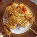 - Be careful while interesting the skewer in the potatoes because the skewer might poke you. And gently pull the accordion potatoes