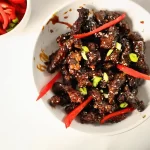Set the air fryer to 200℃ and carefully put the beef on the cooking rack and cook for 6 minutes, then turn and cook for another 6 minutes until crispy.