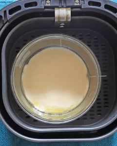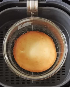 Place the pancake batter in the air fryer basket and cook at 190C/375F for 7-8 minutes or until pancakes are golden brown on top.