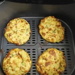 Grease the air fryer grate with oil. Using a spoon, drop some of the potato mixture into the air fryer and form small potato pancakes about 3 inches in diameter. Don’t overcrowd the air fryer – cook in batches if needed.