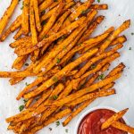 Once you air fry sweet potato fries, you’ll never make them any other way. There’s no deep frying, which eliminates a multitude of unhealthy oil, there’s no mess, and they’re ready in no time.