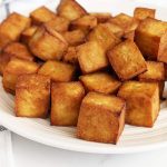 Work in batches if your air fryer is smaller and won’t allow for the entire batch to be in a single layer in the air fryer basket. You don’t want any tofu touching each other so that they cook evenly and allow each edge to become golden and crispy!