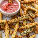 Crispy air fryer zucchini fries are a delicious, healthy alternative to French fries. This quick and easy method for making zucchini fries in the air fryer means less mess, less calories but just as much flavor!